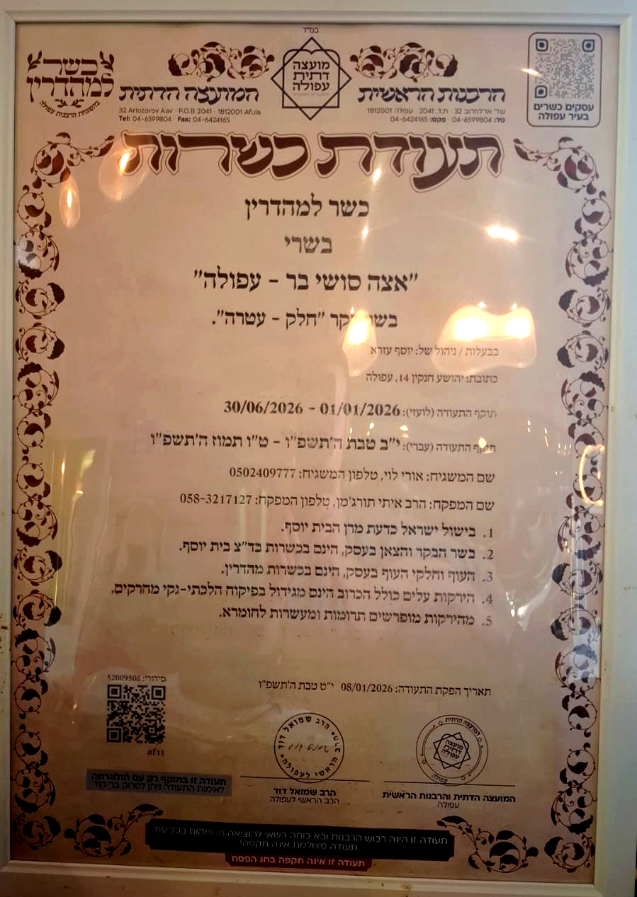 אצה עפולה - כשר למהדרין